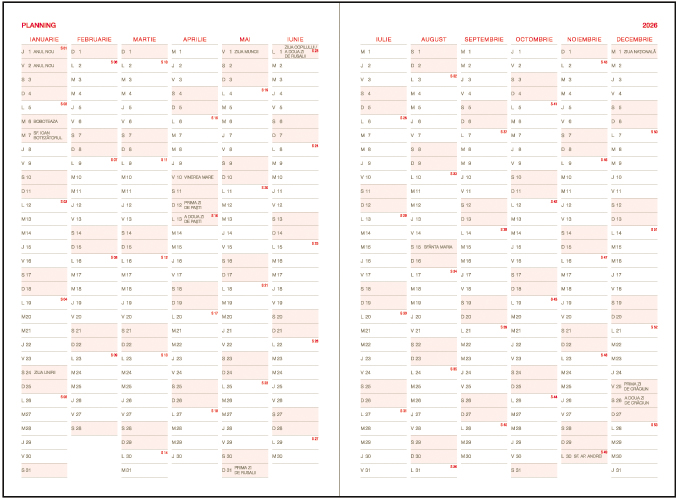 AGENDA A5 SAPTAMANALA ROSIE 2026 AVANTAJ EGO