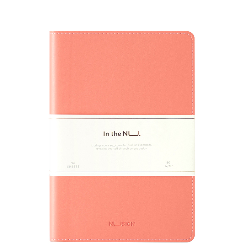 Caiet de birou, format A5, cu 96 de file, dictando, culoare roz. Hartie, nuanta ivory, cu grosimea de 80g/mp. Coperta imitatie din piele cu textura neteda, placuta la atingere.