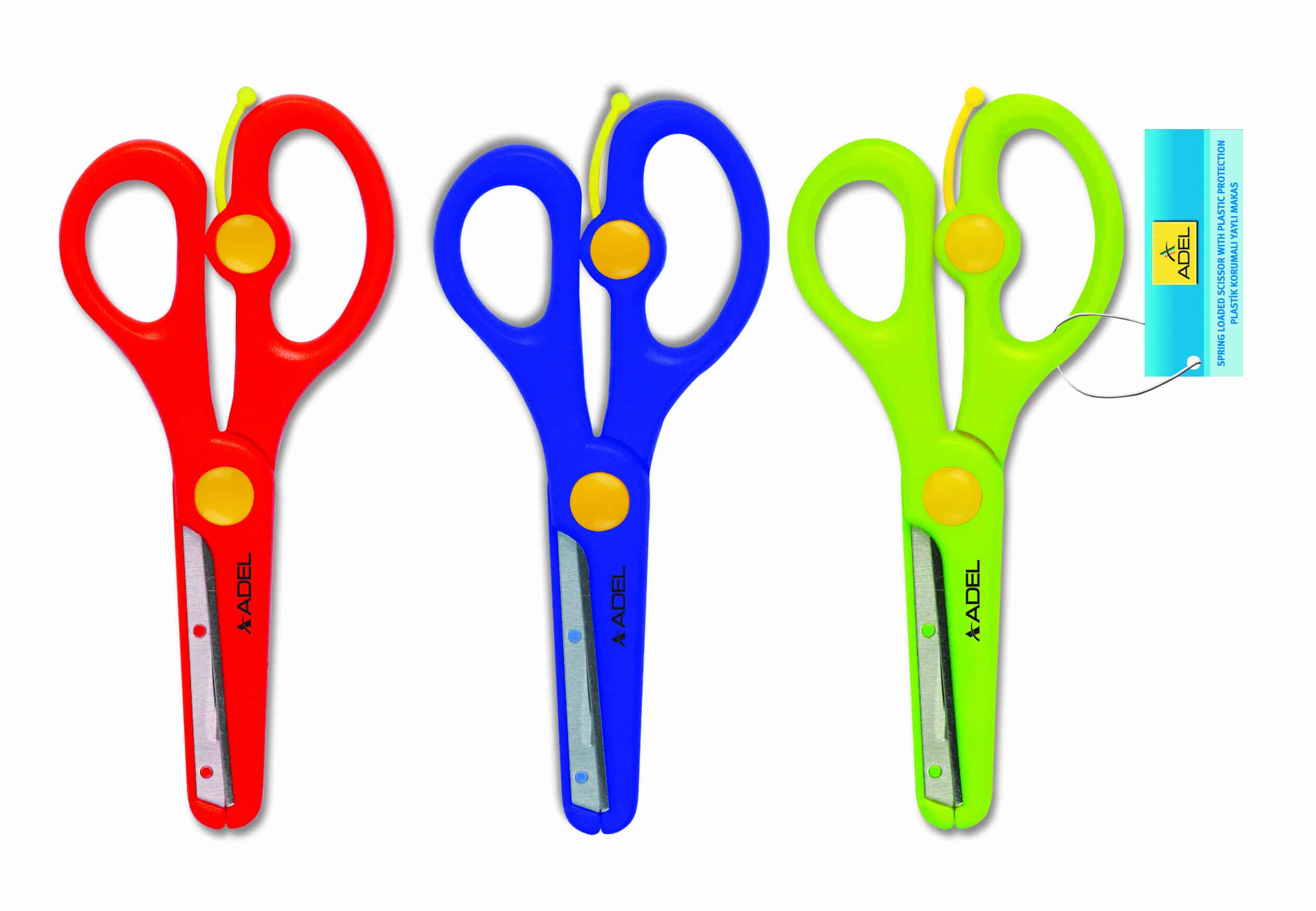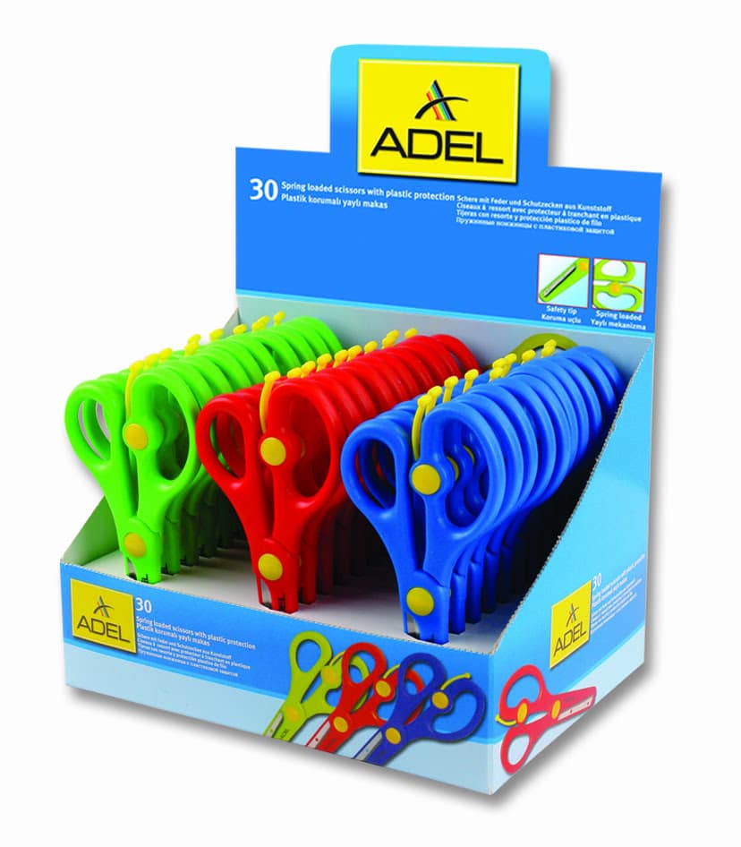 Foarfeca de 13cm, din otel inoxidabil, cu invelis protector. Forma ergonomica si mecanism cu arc. Rigla inscriptionata pe lama. Ideala pentru taierea hartiei sau a cartonului. Culori asortate: verde, rosu, albastru.