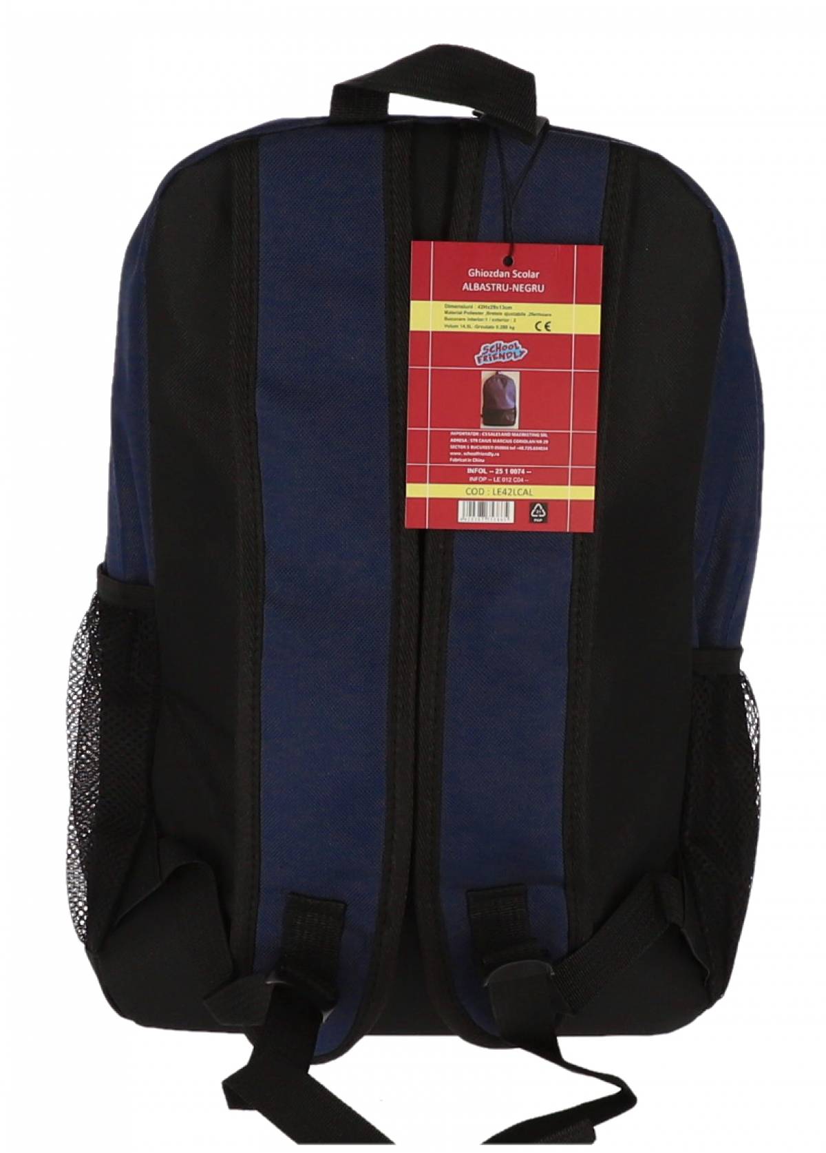 Ghiozdan pentru clasele primare albastru cu 2 fermoare de la Pigna. Bretele ajustabile. Buzunare laterale. Material poliester. Dimensiuni: 42Hx29x13 cm. Volum: 14.5 L. Greutate: 280g.