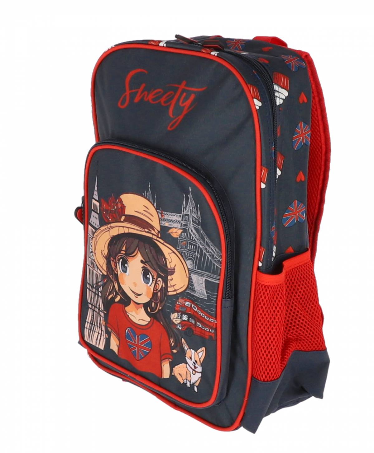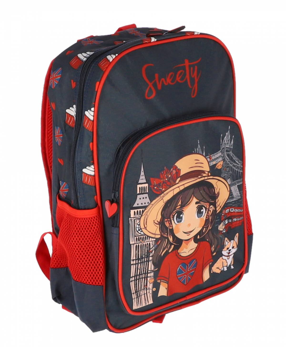 Ghiozdan pentru clasa pregatitoare din colectia Sweety cu 2 compartimente spatioase, perfecte pentru rechizite si gustari. Design usor si compact. Fermoare rosii contrastante – usor de utilizat. Bretele reglabile si captusite pentru confort sporit. Buzunare laterale pentru sticla de apa sau accesorii. Dimensiuni: 38H x 27 x 12 cm.