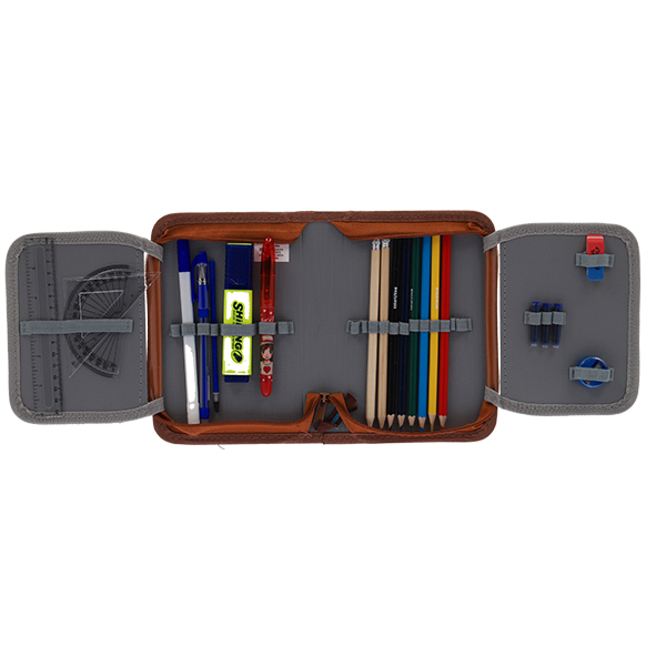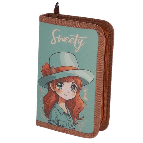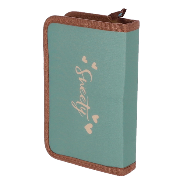 Penar verde Sweety de la Pigna cu un fermoar si 2 extensii, echipat cu 23 piese: un stilou, un pic corector, un textmarker, un pix cu stergere, o rezerva pentru pix cu stergere, 6 creioane colorate, o radiera, o ascutitoare, 2 creioane HB cu radiera, o rigla de 15cm, un echer, un raportor, 3 rezerve de cerneala si 2 orare.