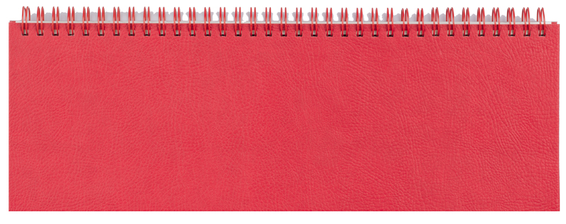 Planner saptamanal cu spira metalica. Format 30x10cm cu 112 de pagini. Hartie offset, ivory, 70g/mp. Imprimare: 2 culori (rosu, gri). Finisare: spra metalica colorata asortata cu coperta. Coperti rigide, texturate, din carton acoperit cu piele ecologica, mata. Personalizare coperta: folio sau timbru sec.