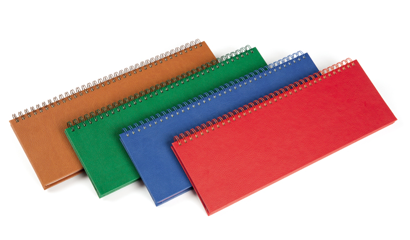 Planner saptamanal cu spira metalica. Format 30x10cm cu 112 de pagini. Hartie offset, ivory, 70g/mp. Imprimare: 2 culori (rosu, gri). Finisare: spra metalica colorata asortata cu coperta. Coperti rigide, texturate, din carton acoperit cu piele ecologica, mata. Personalizare coperta: folio sau timbru sec.