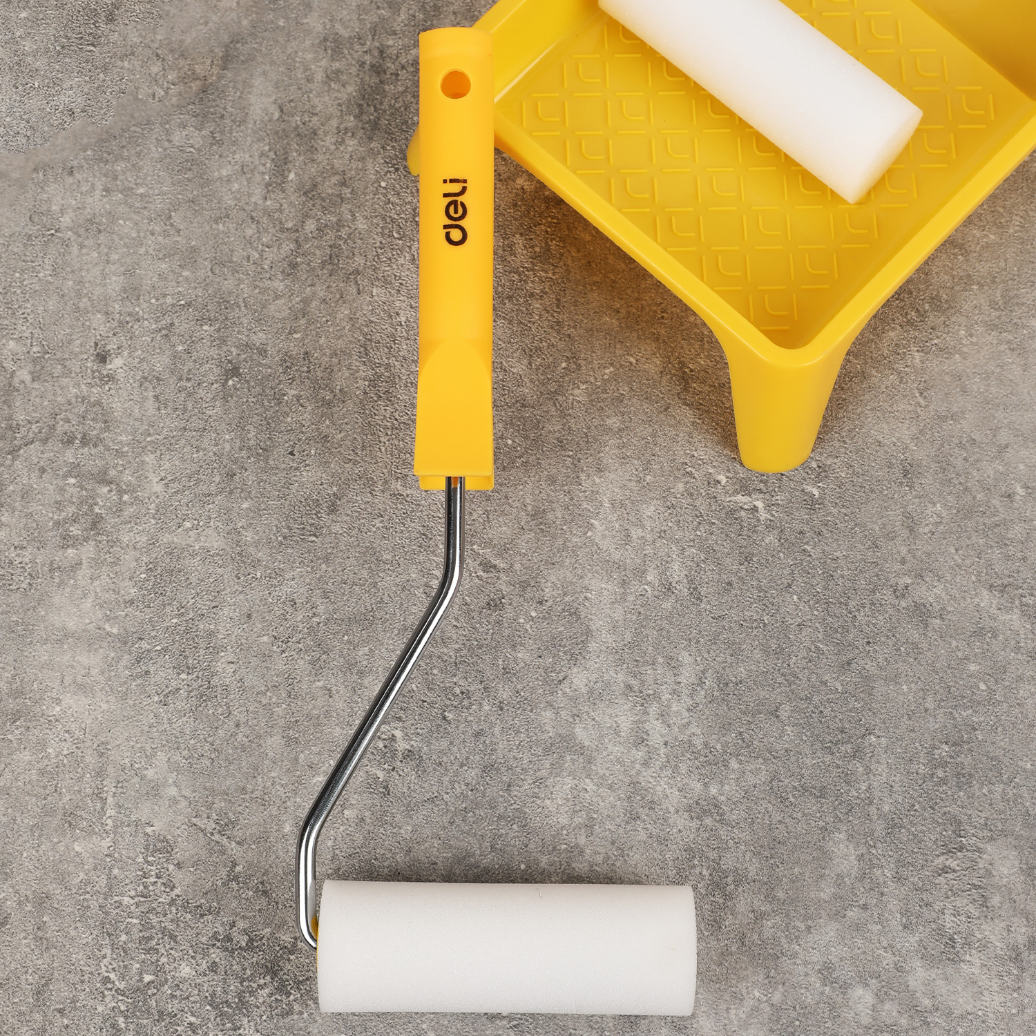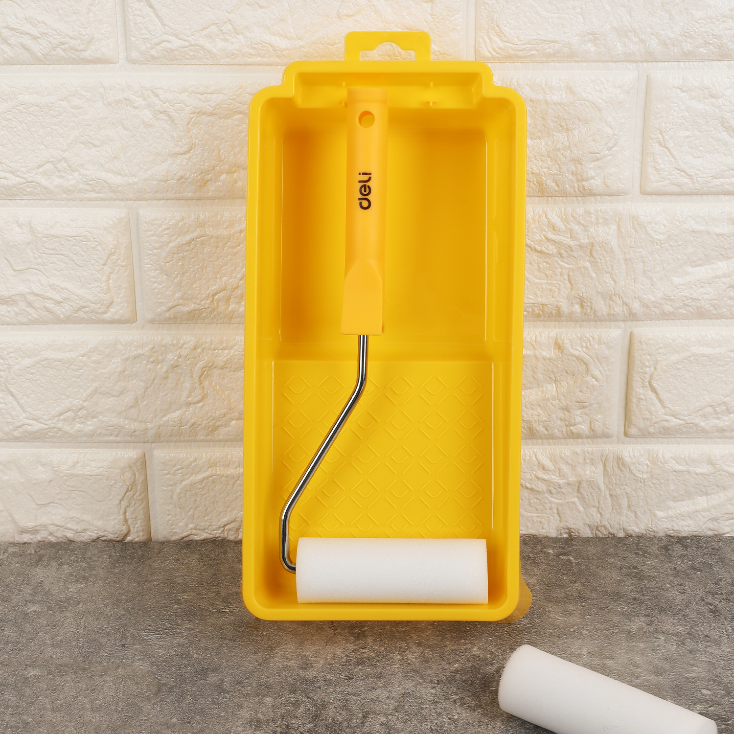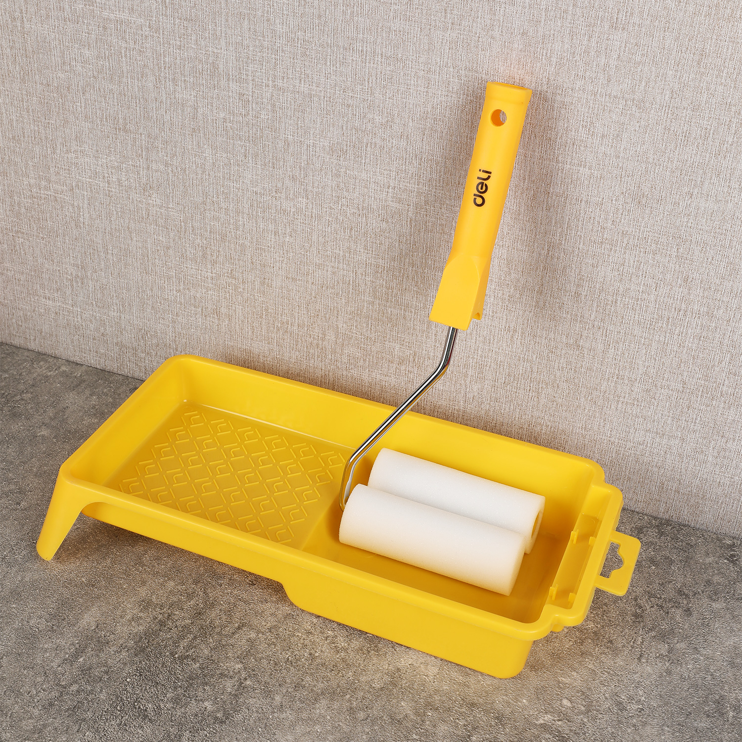 Set pentru zugravit ce contine un trafalet, 2 role si o tavita pentru vopsea. Material cadru PP + nailon + fier. Fir de bumbac gros si ingrosat pentru o absorbtie ridicata a vopselei si o aderenta puternica.&nbsp > Cele 2 role asigura o aplicare uniforma a vopselei pe suprafete diverse, precum pereti, tavane, usi sau mobilier. Tava pentru vopsit inclusa in set este fabricata dintr-un material durabil si rezistent. Este prevazuta cu margini inalte, care ajuta la prevenirea scurgerilor si stropirilor nedorite. Maner confortabil pentru o prindere usoara si un control optim in timpul utilizarii.