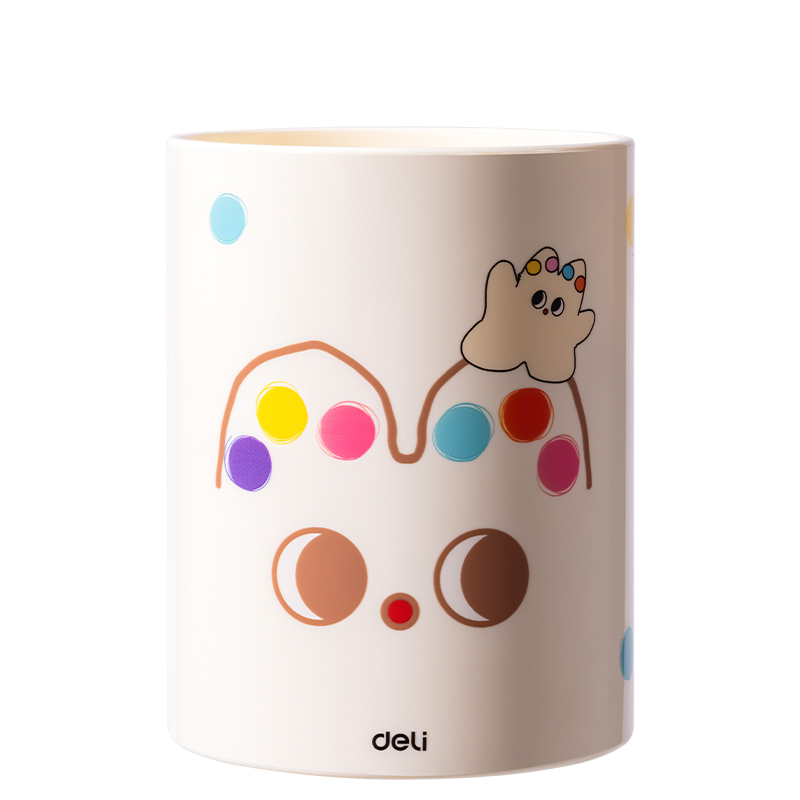 Suport instrumente de scris alb Deli pentru instrumente de scris. Material din plastic ABS de inalta calitate – durabil, rezistent la socuri si uzura. Suprafata neteda, usor de curatat. Conceput pentru organizarea pixurilor, creioanelor, markere-lor, riglelor si altor accesorii de birou. Margini rotunjite. Dimensiune compacta – nu ocupa mult spatiu pe birou, dar ofera suficienta capacitate de stocare. Dimensiuni: 85 x 85 x 109 mm (L x l x H).